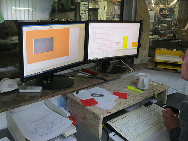 Diese werden hintereinander angebracht. Der Abstand zwischen den Seilen richtet sich nach der gewünschten Plattenstärke. Eine Maschine kann bis zu 80 Seile führen.