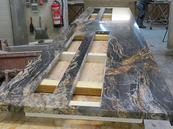 Begrenzt sind diese aber durch das spezifische Gewicht.Eine Platte von 60 x 60 x 1 cm wiegt ca. 11 Kg.