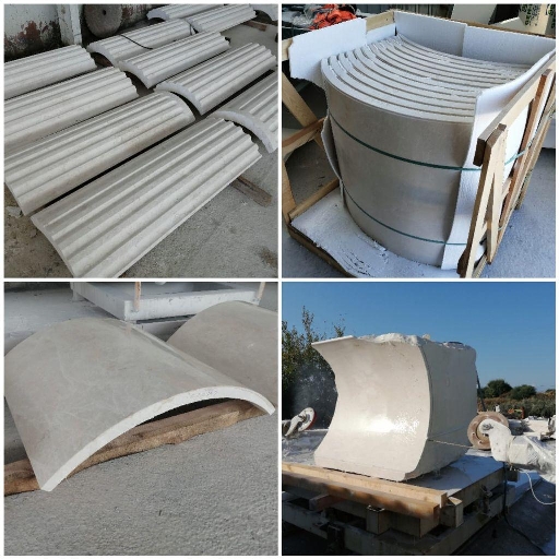 Mit dieser Technik können heute auch dünnere Platten von bis zu 1,2 cm Stärke geschnitten werden, aus welchen man Bodenplatten schneiden kann. Dies hat zwar einen preislichen Nachteil gegenüber der Taglia Blocki da man die Unmaßtafel noch einmal in Bodenplatten schneiden muss, aber garantiert, das Bodenplatten und Unmaßtafeln, aus denen die Treppen geschnitten werden, farblich gleich sind.