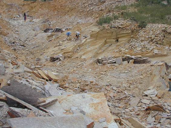 Beim Abbau folgt man dem Gestein und so kann man z.B. in Portugal tiefe Steinbruchkessel finden.